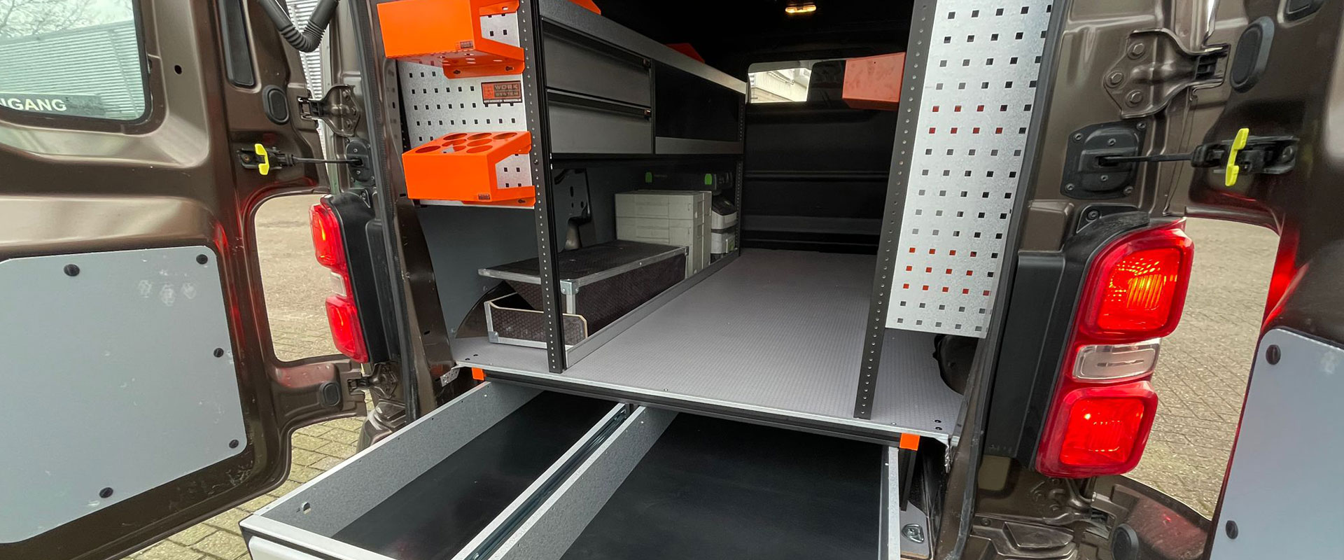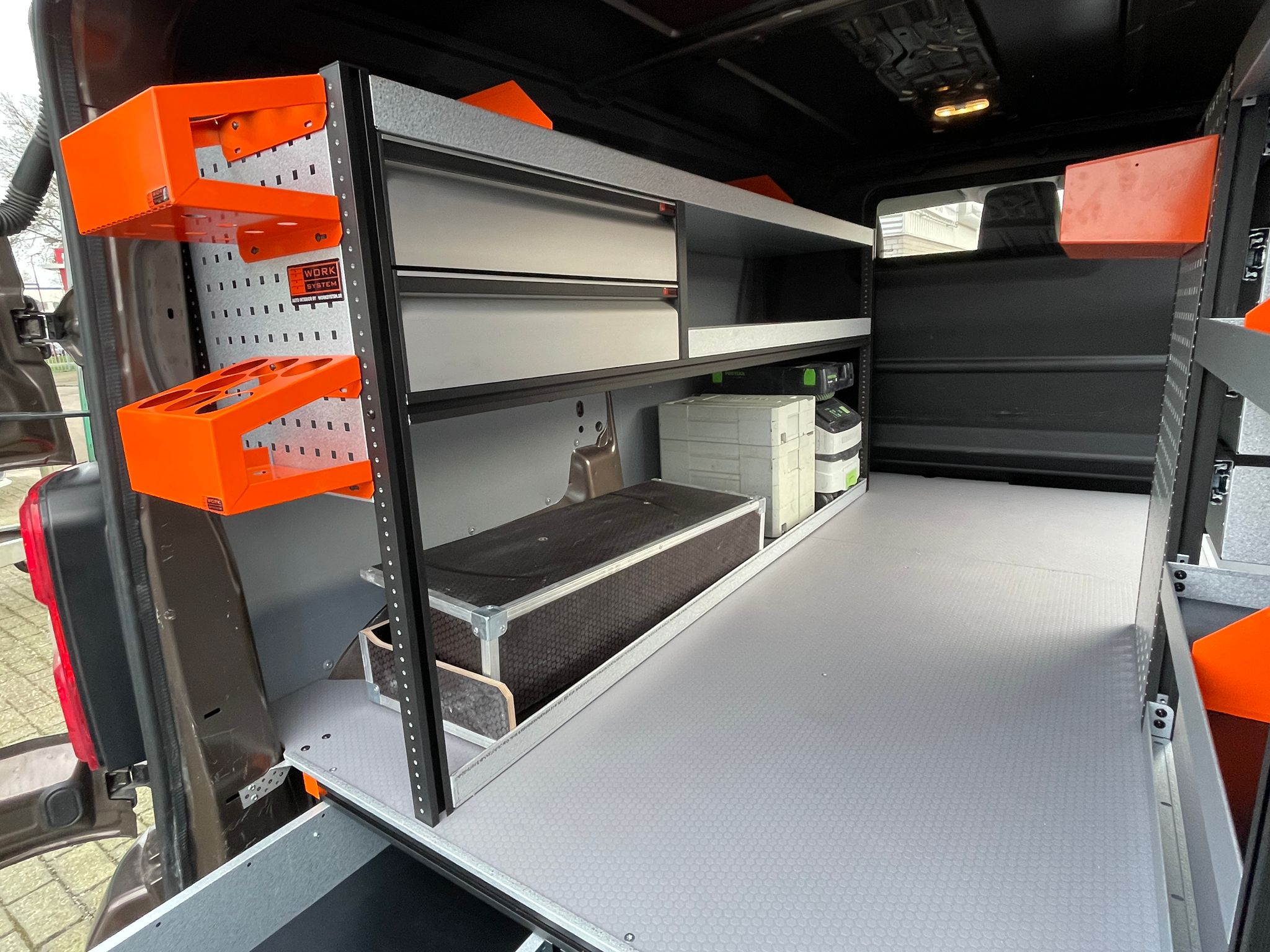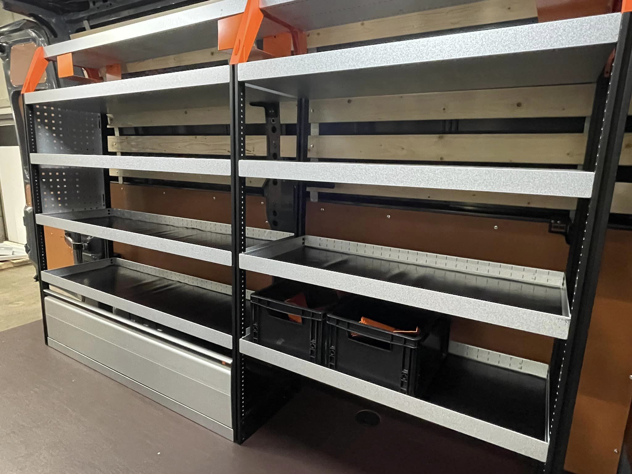 Bekijk de afbeeldingen voor een paar voorbeelden bedrijfswagen inrichting oplossingen door Auto Stekelenburg – van Zessen gemonteerd.