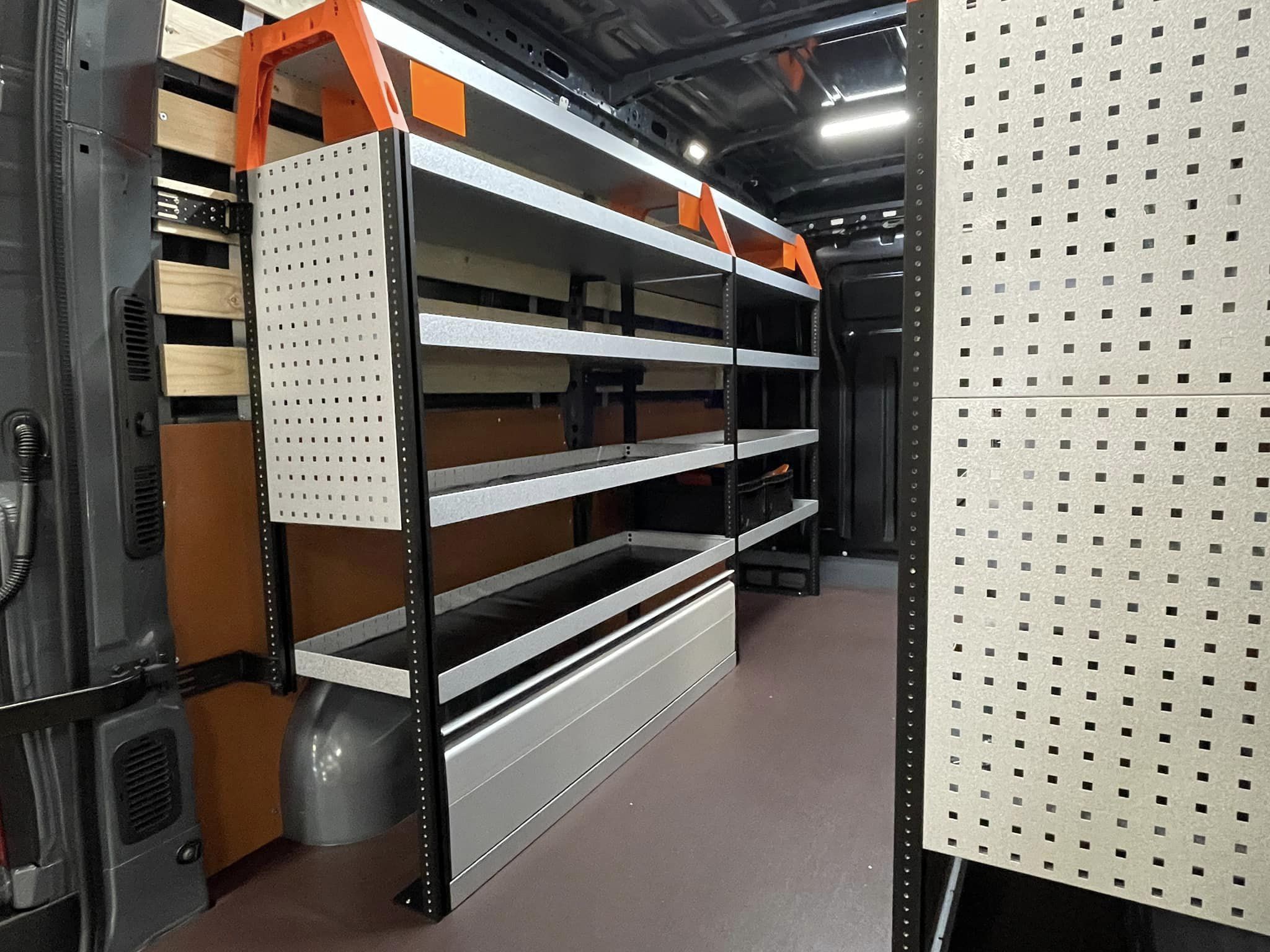 Ons assortiment bestaat uit zowel eenvoudige als meer geavanceerde interieursystemen met een panelen en legplanken. Samen met verschillende ladecombinaties, sleden, tussenschotten en nog veel meer, kunnen we een systeem creëren dat perfect is afgestemd op u en uw bedrijf. Tijd is geld.